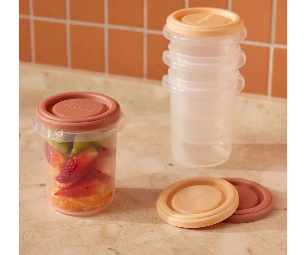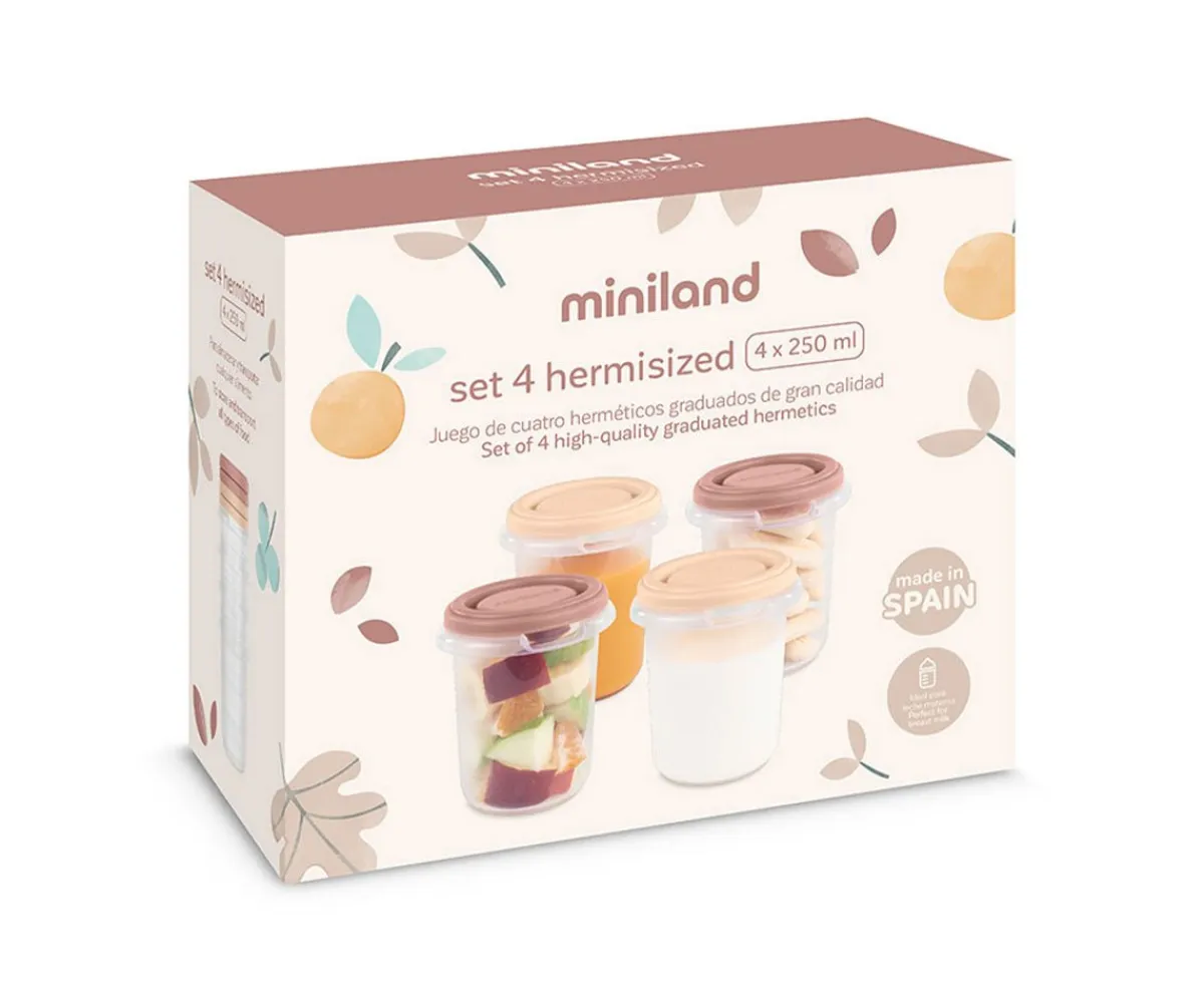 Los 4 recipientes herméticos con capacidad de 250ml de la colección Valencia de Miniland, son estupendos para congelar las comidas de tu bebé de manera práctica, sencilla y rápida.