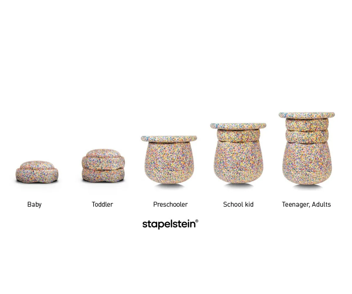 El Stapelstein® Dynamic Small Set es mucho más que un simple asiento: perfecto para fomentar el movimiento, la concentración y el desarrollo integral desde la infancia hasta la edad adulta. Este versátil set incluye: