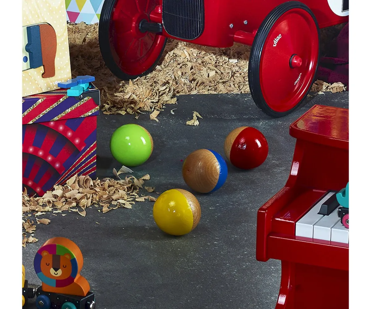 Este conjunto de petanca en madera pintada es perfecto para acompañarte en tus excursiones al campo, para llevar siempre contigo al parque o, incluso, ¡para disfrutar en tu patio los días soleados! Podrás jugar en cualquier sitio, disfrutando de un juego clásico.