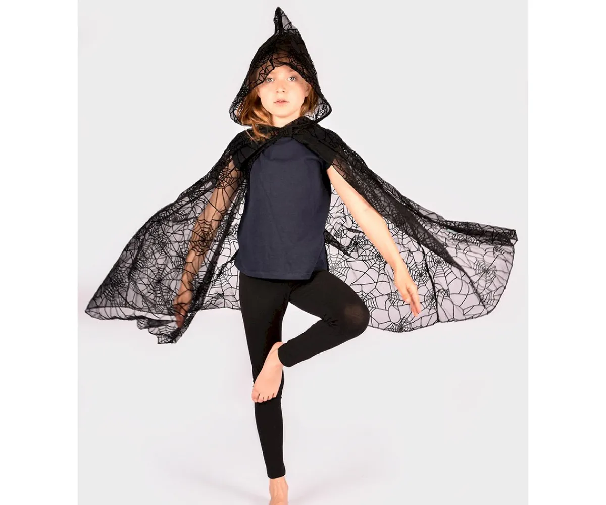 La capa semitransparente con efecto telaraña de Den Goda Fen cuenta con una capucha y será el accesorio ideal para cualquier fiesta de disfraces.
