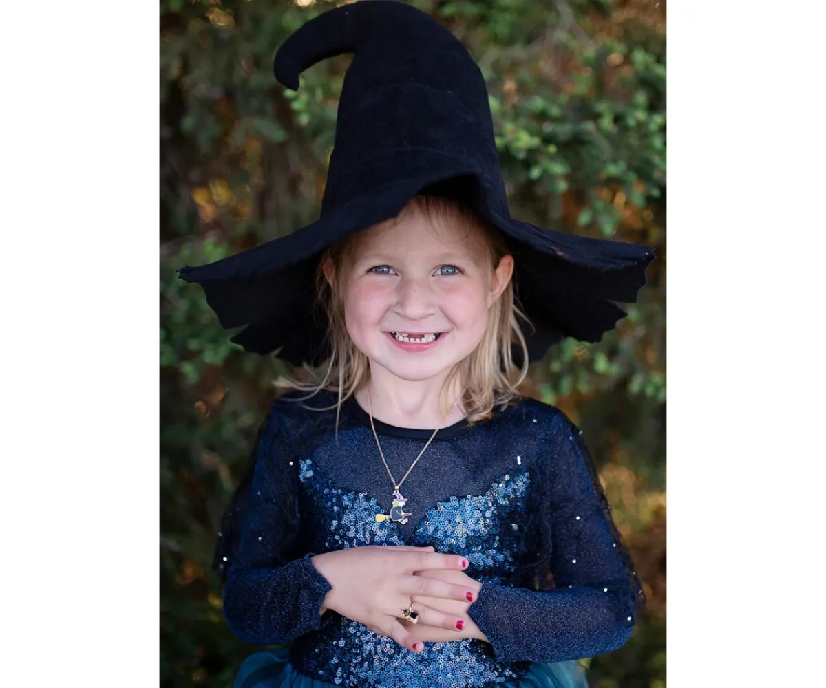El sombrero puntiagudo de Great Pretenders es el accesorio ideal para brujas poderosas y con mucha personalidad. De gran tamaño y en color negro clásico, este sombrero será el complemento perfecto para cualquier disfraz.