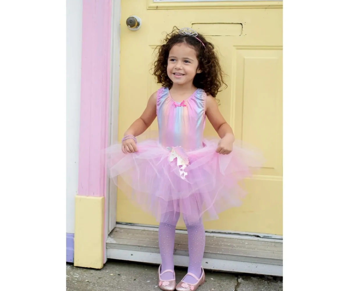 El encantador tutú de unicornio de Great Pretenders está hecho con capas de tul morado y rosa. Es muy cómodo y suave, y la cinturilla elástica permitirá ajustarse al tamaño de los peques.