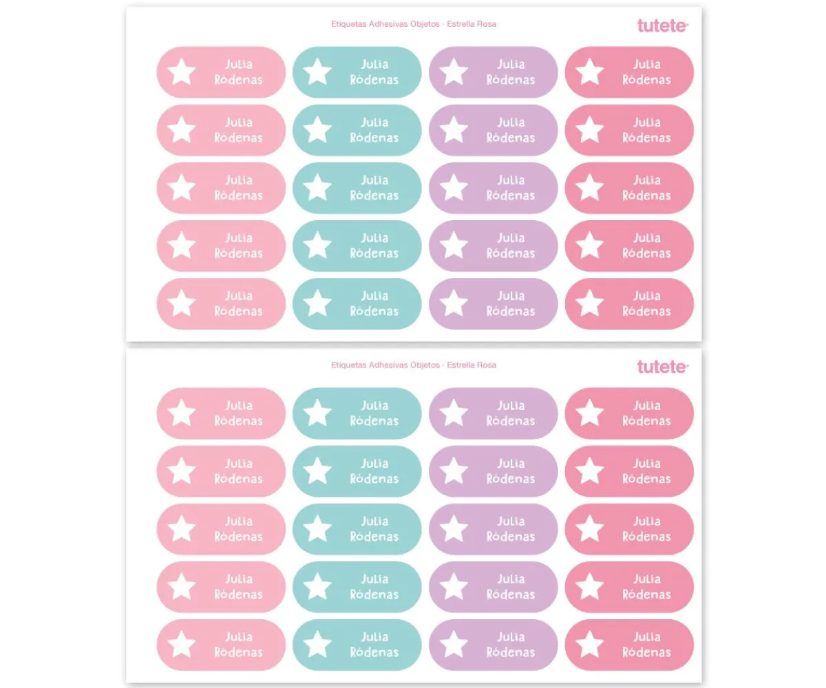 Práctico pack de 40 etiquetas adhesivas personalizadas con el que podrás etiquetar libros, fiambreras, juguetes, botellas… ¡Márcalo todo para no perder nada!