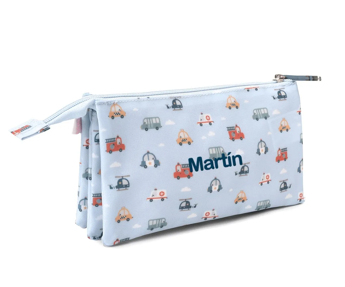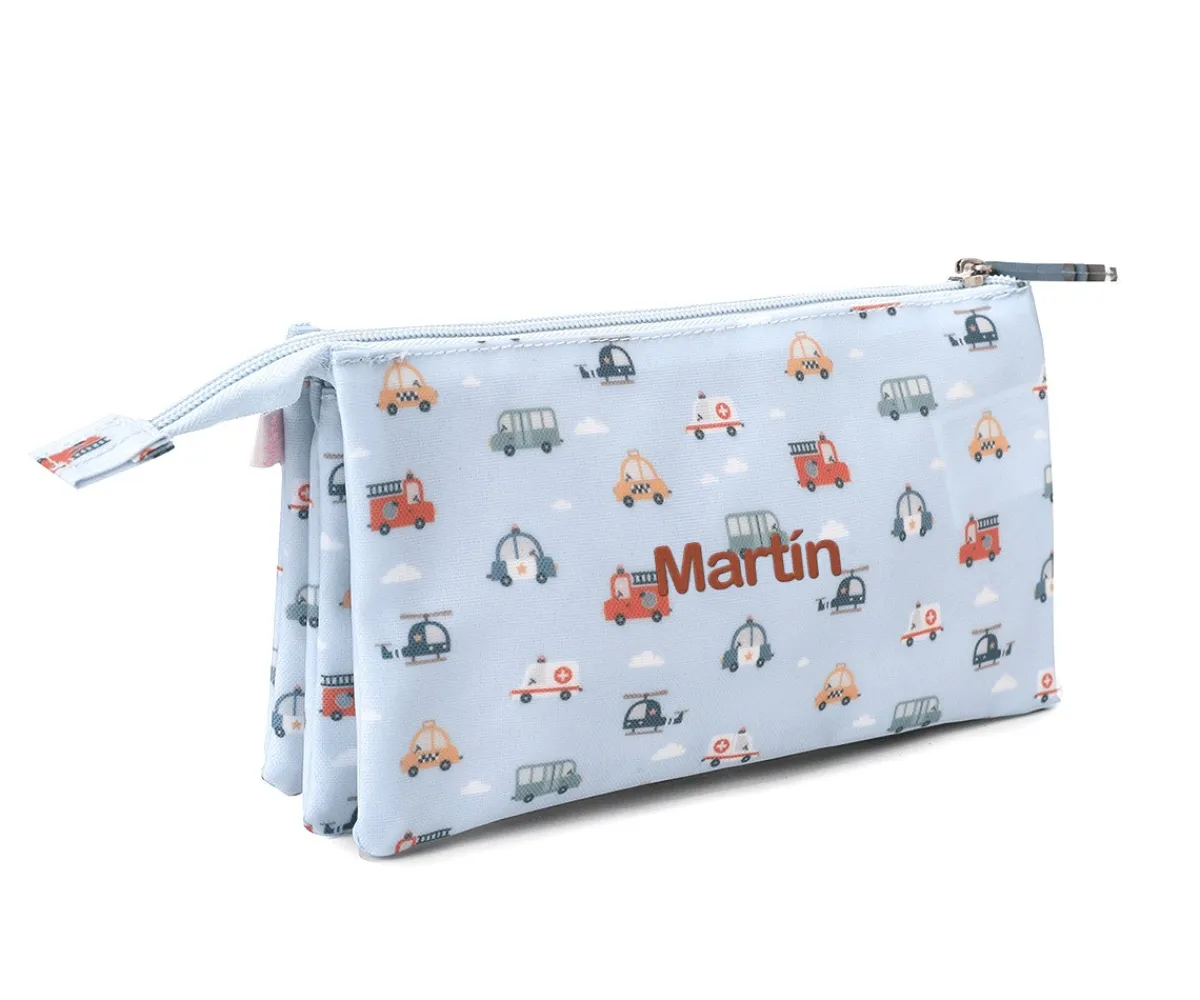 Estuche Escolar de 3 Compartimentos Personalizado de la Colección Vuelta al Cole City Cars de Tutete.