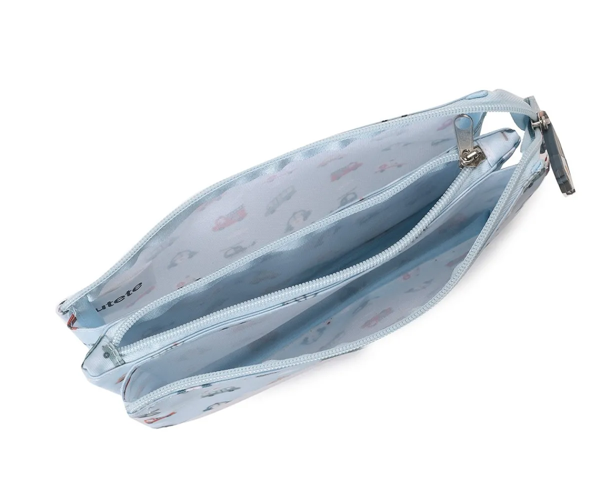 Haz que tu peque se divierta organizando su material con el estuche escolar infantil de 3 compartimentos de Tutete. Su diseño urbano, lleno de coches coloridos, lo convierte en un accesorio ideal para niños amantes de los vehículos.