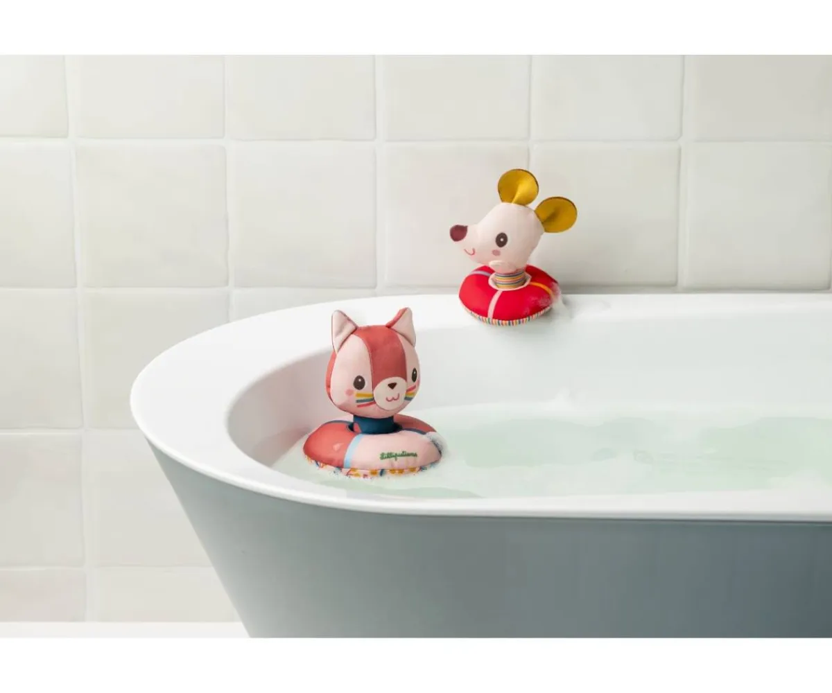 A Jeanne la gata y a Nina la ratoncita de Lilliputiens, ¡les encanta nadar! Cómodamente instaladas en sus flotadores, flotan alegremente sobre el agua y acompañan al niño en todas sus aventuras durante el baño.