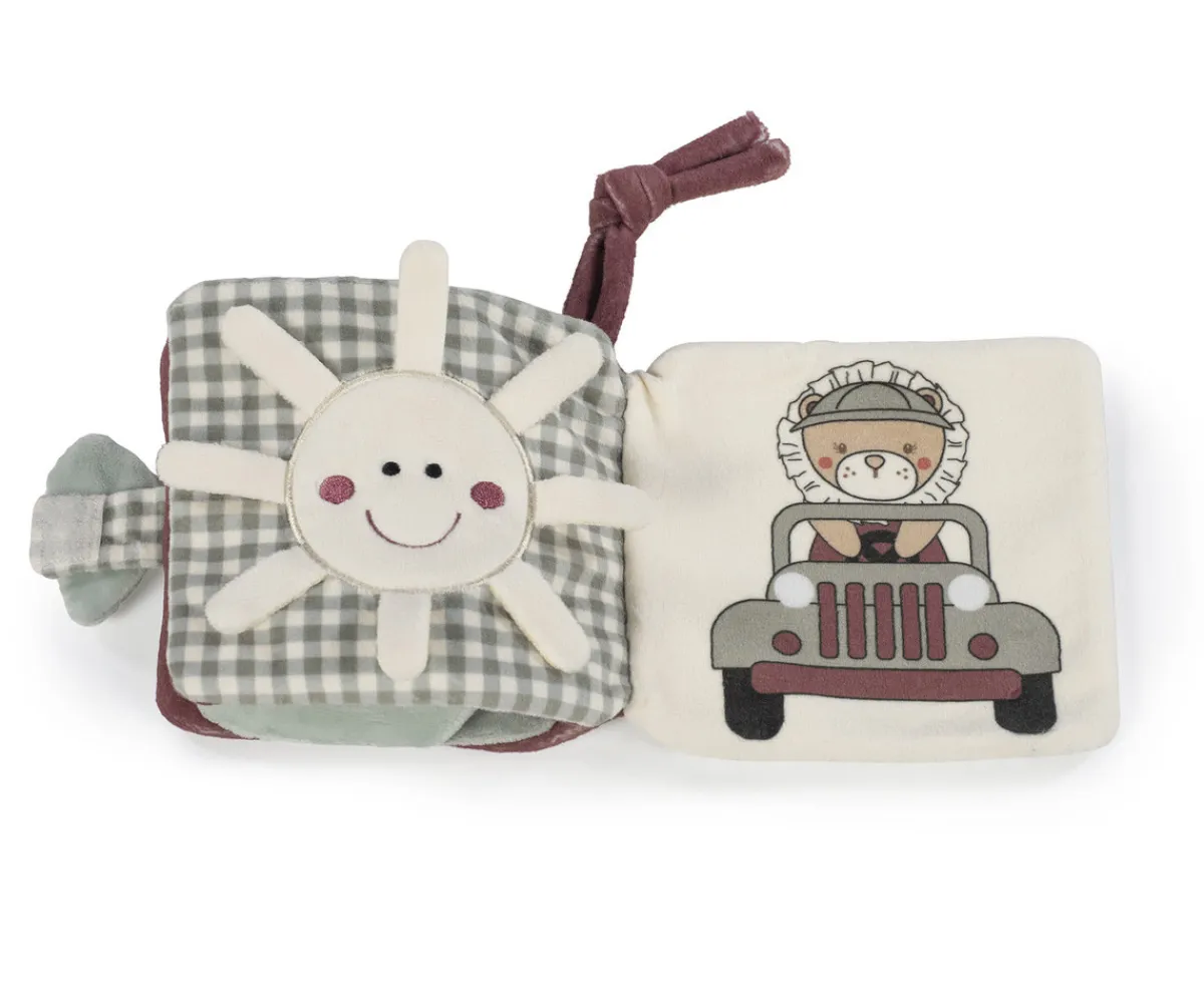 Este adorable libro está diseñado para estimular los sentidos y el desarrollo temprano de tu bebé. Cada página ofrece sorpresas como un león asomándose, una luna arrugada con estrellas, un sol sonriente y un león aventurero en un jeep, que fomentan la curiosidad y las habilidades motoras finas.