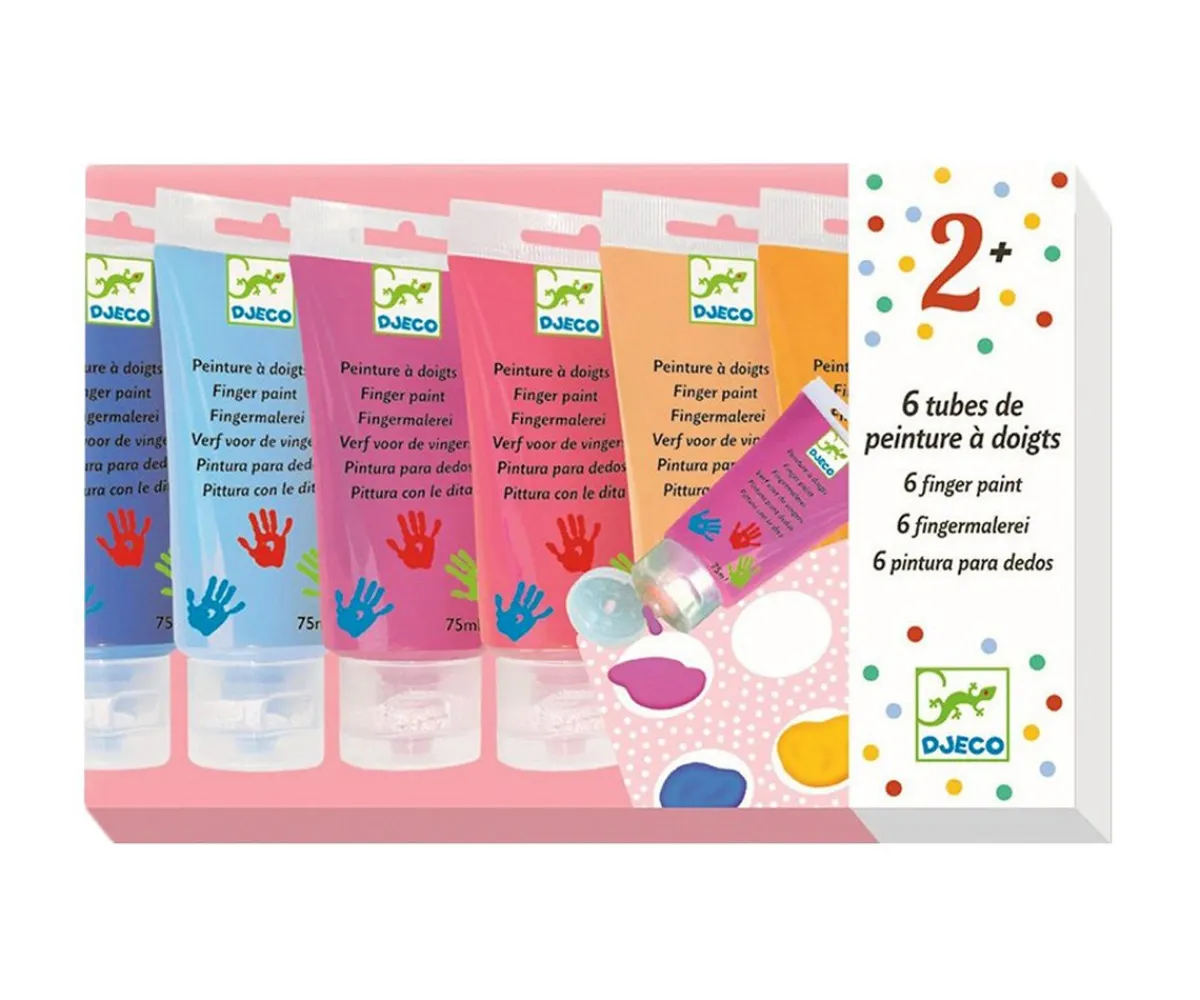 Esta caja contiene todo lo necesario para improvisar una sesión de pintura. No son necesarios pinceles, los dedos de los más pequeños son suficientes.