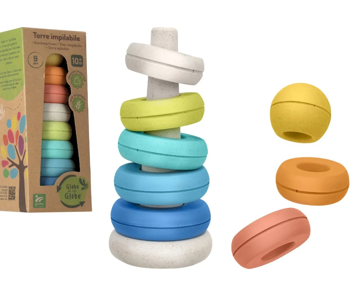 La torre apilable de 9 pisos de Globo for the Globe es perfecta para que lo peques desarrollen la coordinación mano-ojo y sus habilidades motoras finas. Cada piso tiene un llamativo color y un tamaño diferente que captará su atención.