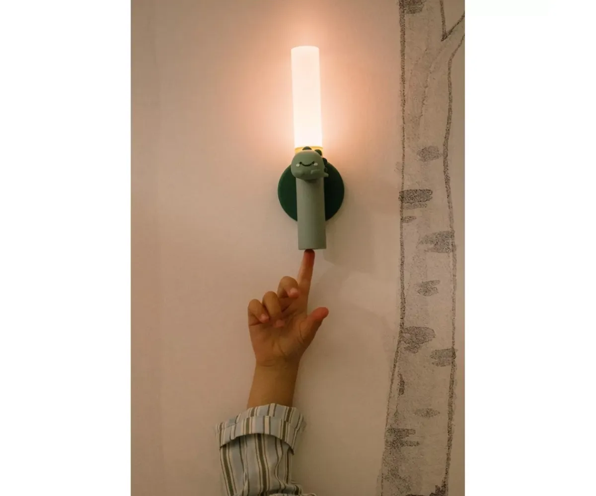 Una encantadora luz nocturna con forma de dinosaurio que aporta seguridad, confort y diversión durante el día y la noche.
