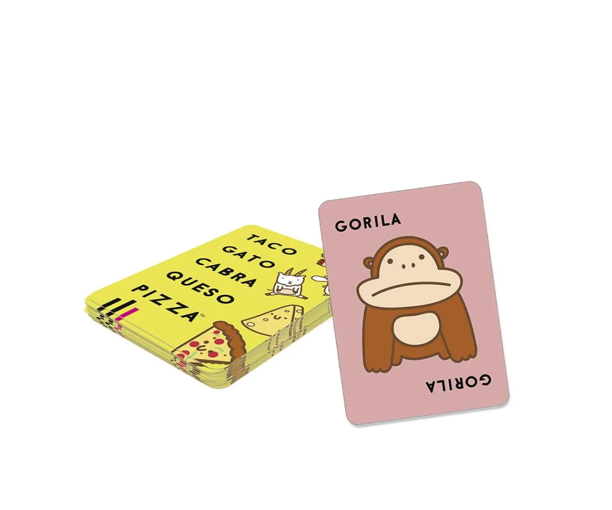 En Taco gato cabra queso pizza debes ser el más rápido. Cuando un jugador se descarte de una carta que coincida con la palabra que dice, coloca tu mano sobre el montón central, ¡el último en poner la mano se queda con todas las cartas del montón! Concéntrate y sé el más rápido en deshacerte de todas tus cartas. La diversión está garantizada con este frenético y divertido juego de cartas.