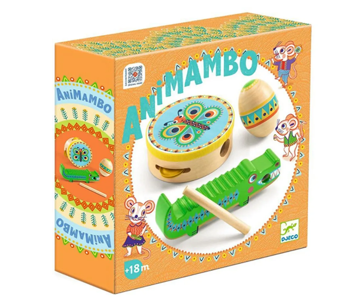 - Contenido instrumentos de percusión: 1 pandereta, 1 maraca y 1 güiro
