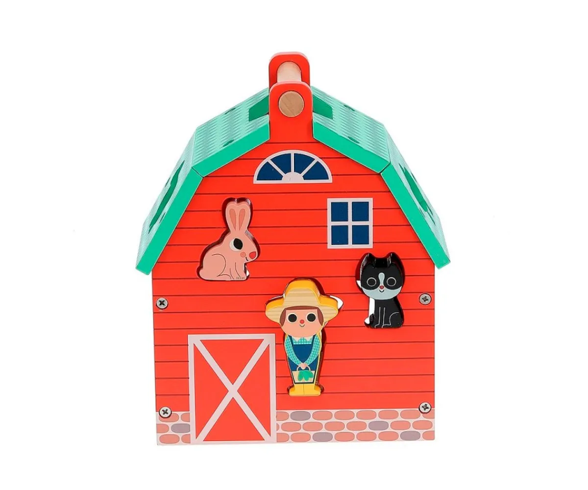 Además es fácil de transportar gracias a su asa de madera situada en el tejado de la granja.