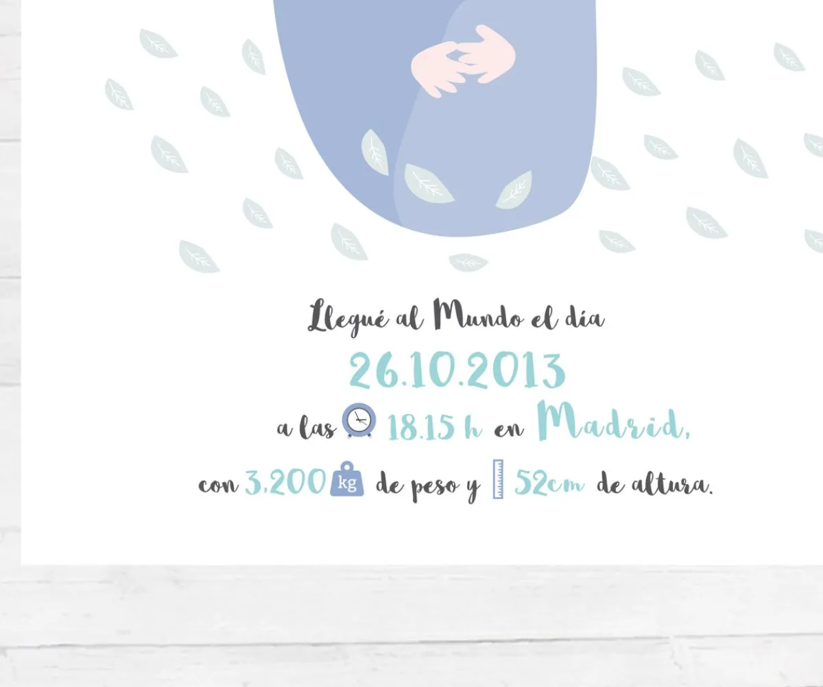 Lámina de nacimiento para personalizar con el nombre del bebé y con sus datos de nacimiento. Ideal para decorar su habitación y tener un bonito recuerdo de su llegada al mundo.