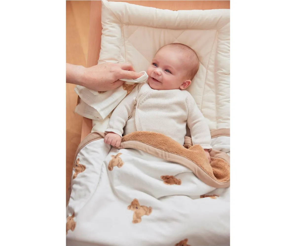 Mantita con forro de oso de peluche que mantendrá a tu bebé perfectamente abrigado. El tamaño de la manta es perfecto para la cuna o el cochecito.