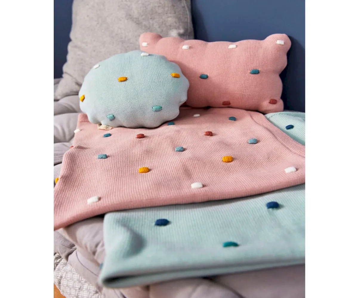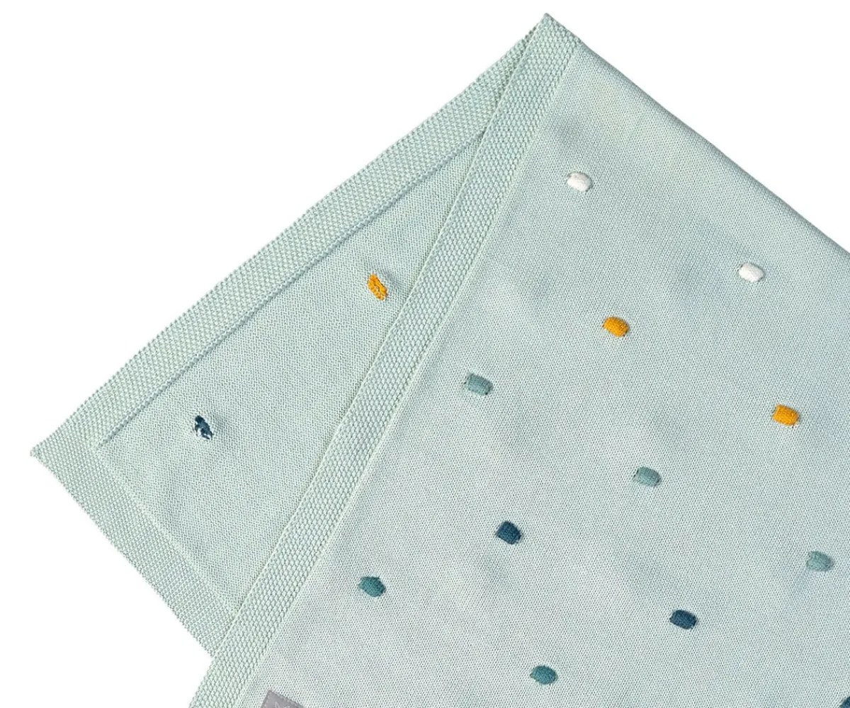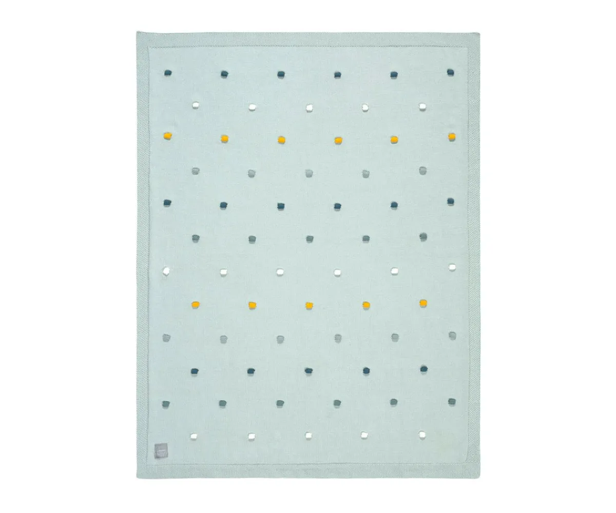 Esta manta de bebé está tejida con un patrón de puntos tridimensionales hecho de algodón orgánico certificado GOTS y ofrece una sensación de bienestar general.