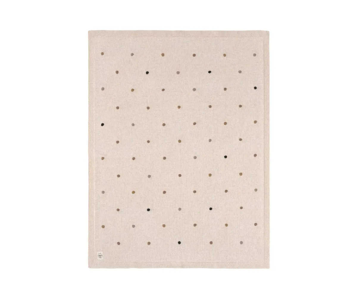 Esta manta de bebé está tejida con un patrón de puntos beige, hecha de algodón orgánico certificado GOTS y ofrece una sensación de bienestar.