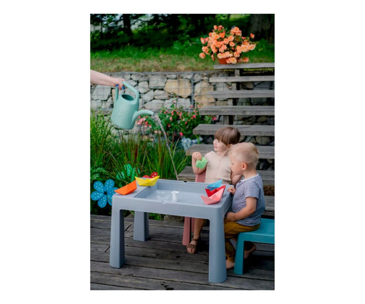 - Puedes agregar arena o agua para que los peques se diviertan al aire libre