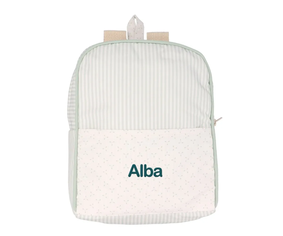 Mochila de tela ideal para llevar las mudas a la escuela infantil o primeros cursos del colegio. Se puede colgar fácilmente en una percha o gancho gracias al asa que lleva en la parte superior.
