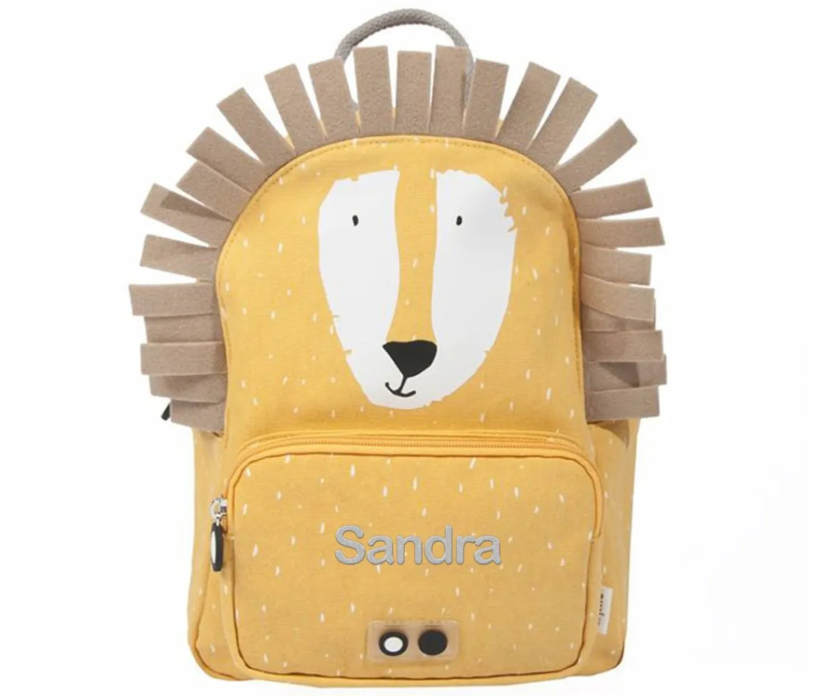 Mochila con divertido diseño para llevar al colegio o la escuela infantil con llavero personalizado a juego con este divertido leoncito.