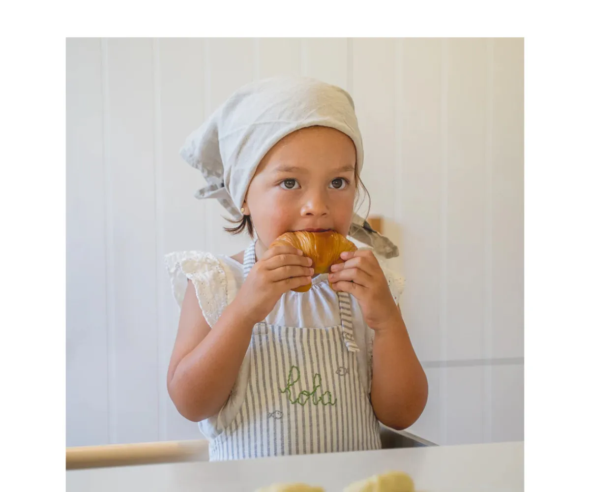 Sam le Croissant es un mordedor artesanal de Lolaletost con forma de croissant, diseñado para aliviar las molestias de la dentición y estimular los sentidos del bebé. Su forma en media luna se adapta perfectamente a las pequeñas manos y su textura suave y realista proporciona un alivio reconfortante para las encías irritadas.