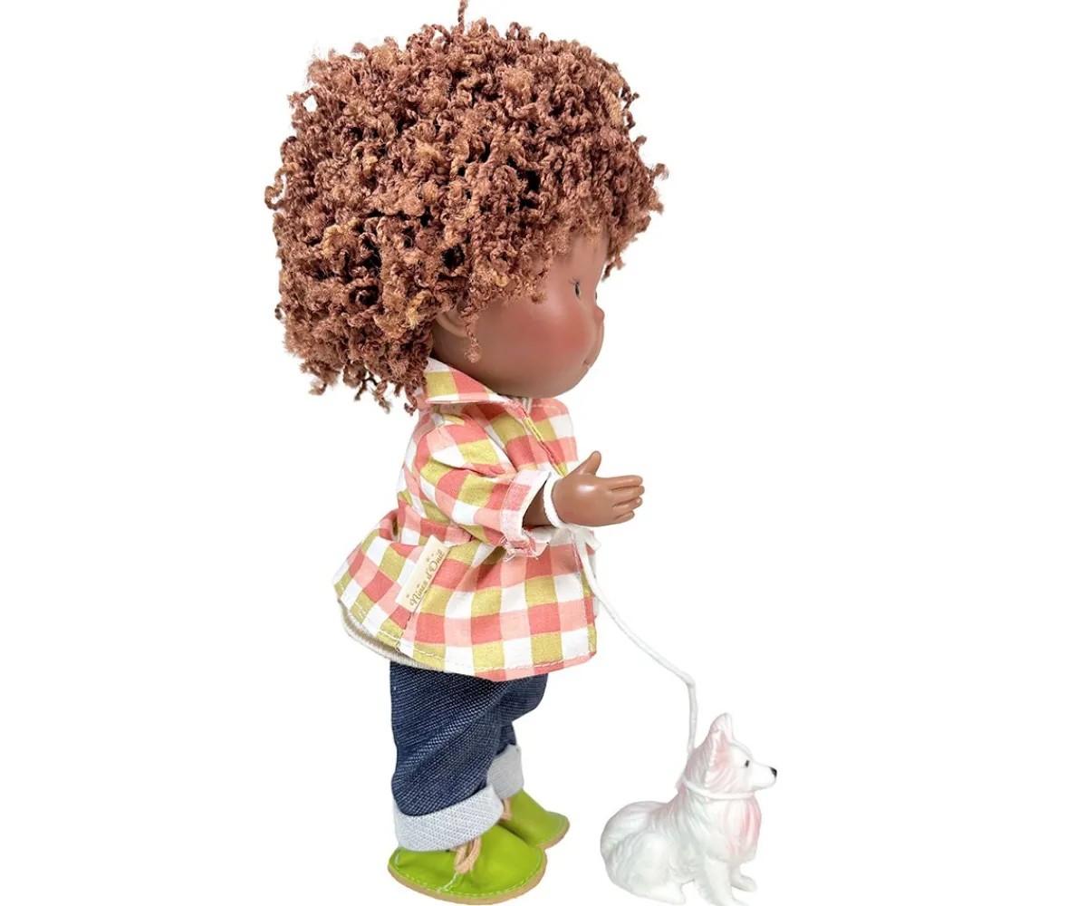 Nines d’Onil presenta al muñeco Pippo con su querida mascota, fabricado en vinilo y con un suave aroma a vainilla va vestido con unos jeans, una camiseta con sobrecamisa y unos zapatitos.