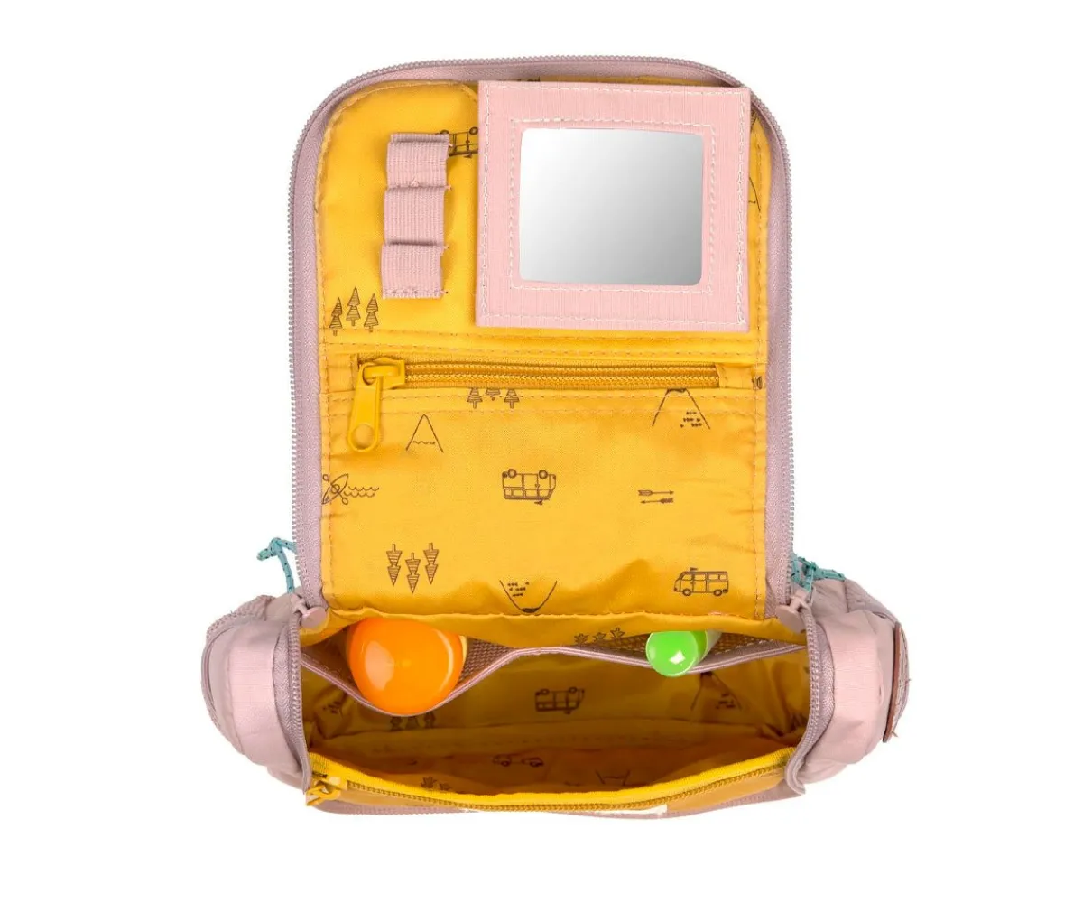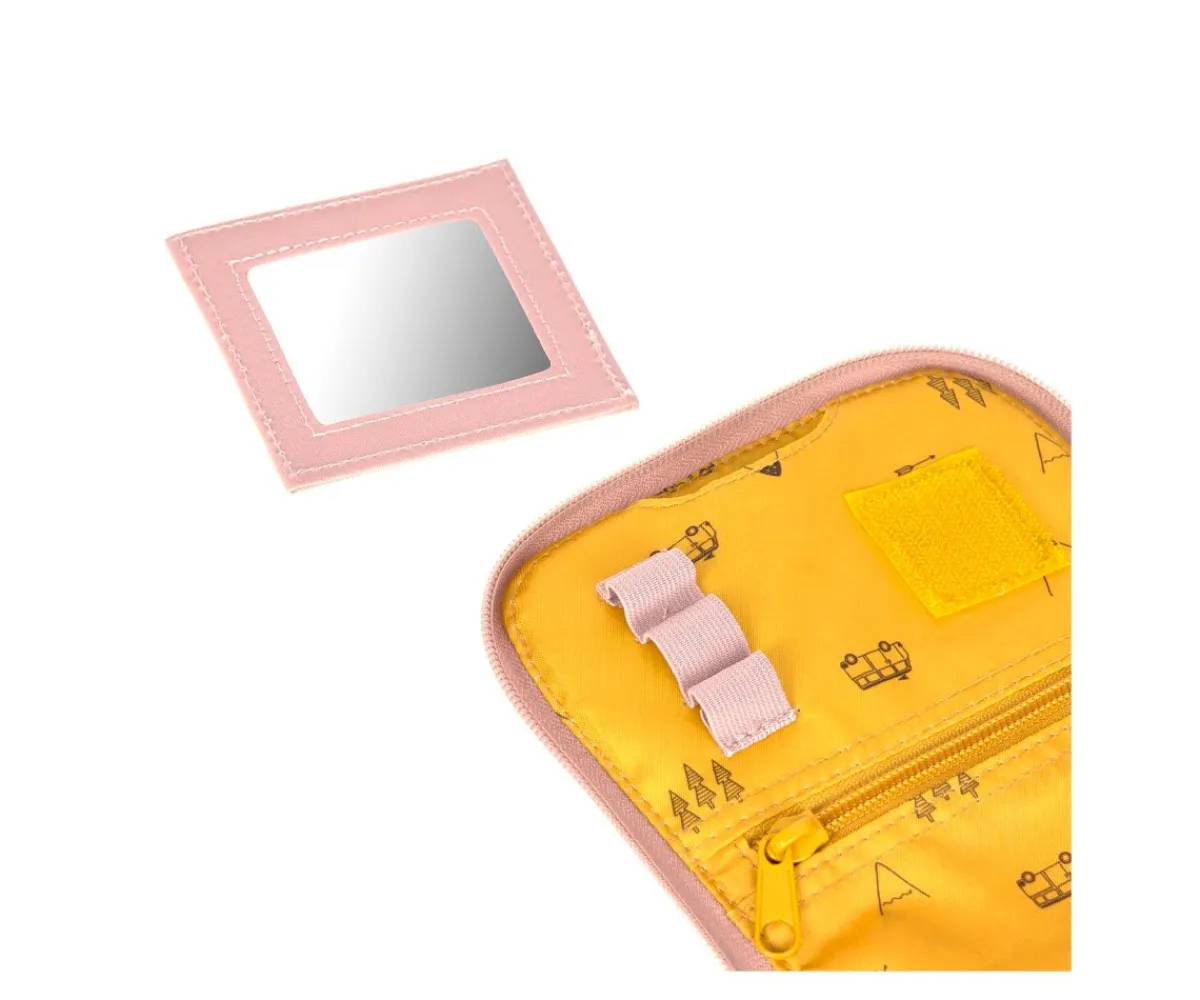 El material exterior es repelente al agua, tiene un gancho para colgar el neceser donde necesites y los espejos extraíbles te serán de mucha utilidad en escapadas en la naturaleza.