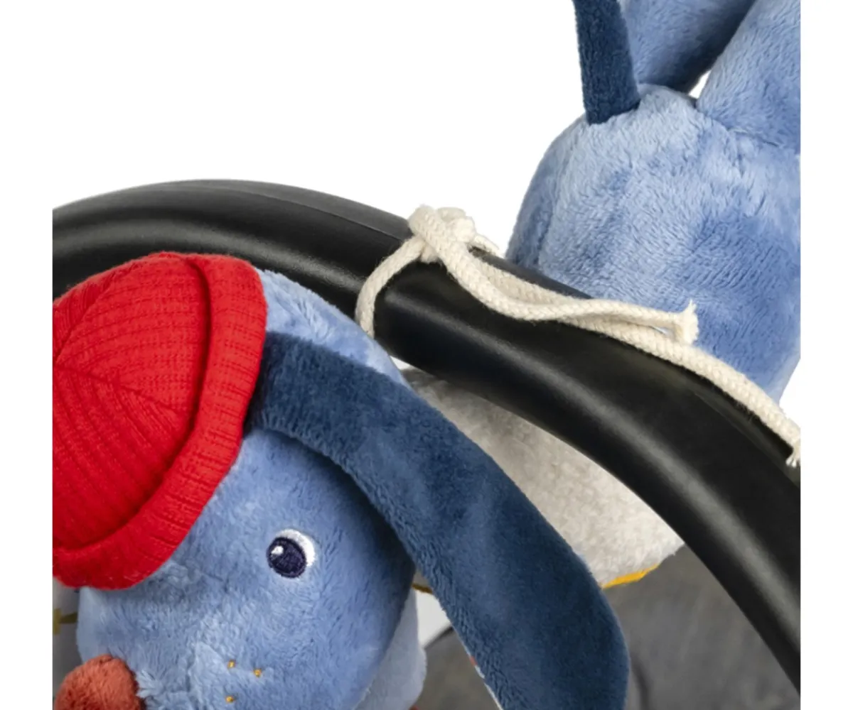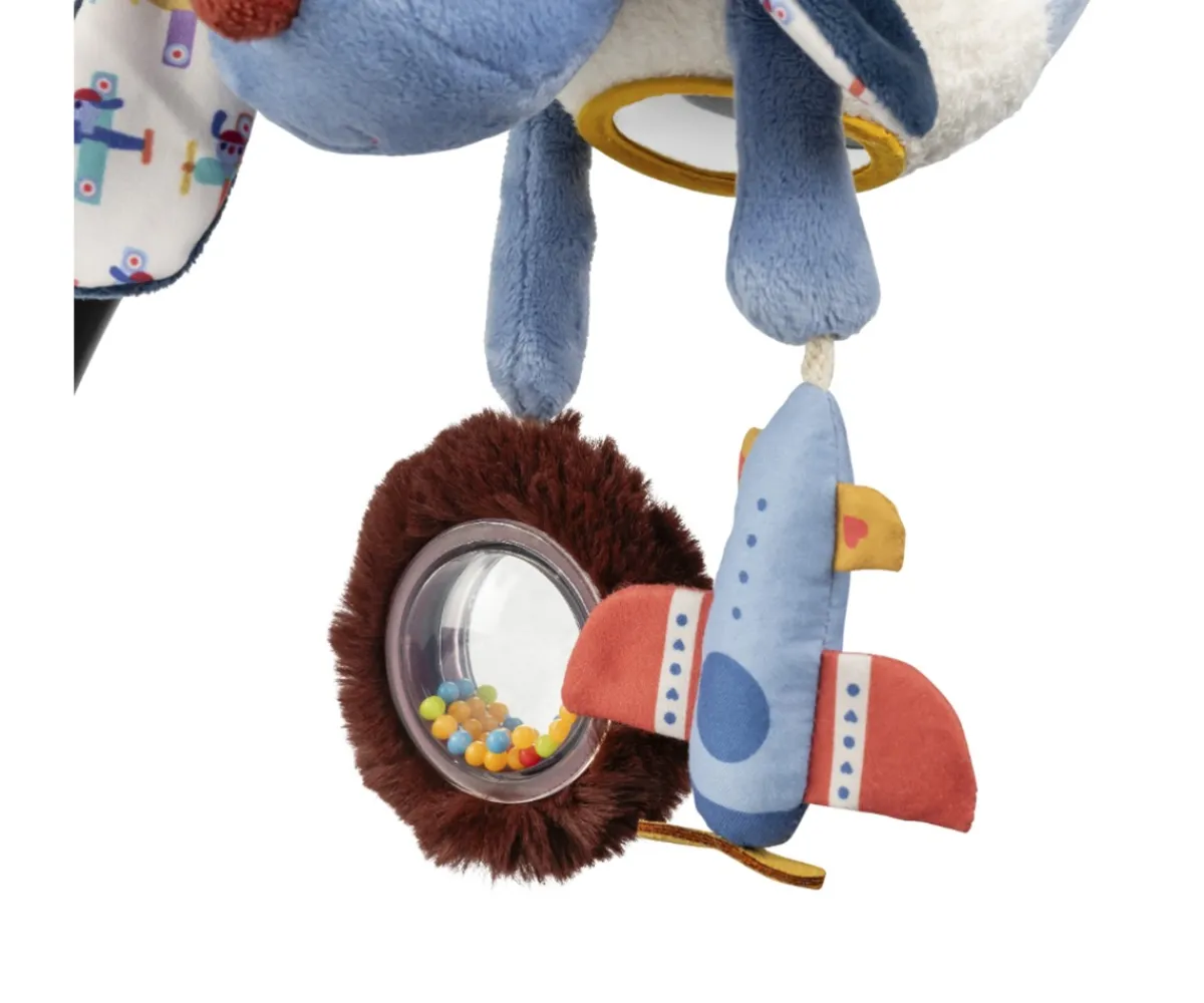 El perrito Jules de Lilliputiens es un adorable juguete de actividades pensado para estimular los sentidos de los más pequeños. Se puede colgar en el cochecito o la silla de paseo, e incluye un espejo sensorial, un sonajero erizo y una avioneta que lo convertirán en el pasatiempo favorito de tu bebé.