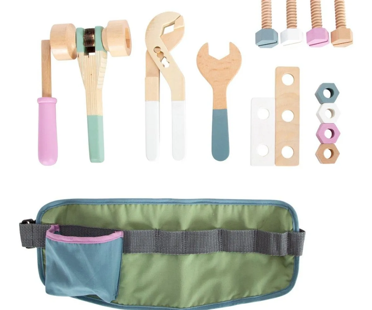Con este cinturón de herramientas ajustable de aspecto escandinavo con colores suaves, los pequeños artesanos tienen las manos libres y su equipo a mano. Con herramientas y accesorios realistas y una práctica hebilla hebilla de clic, el cinturón de herramientas ajustable contiene el equipo completo de herramientas y está siempre a mano. También es ideal para el trabajo profesional sobre la marcha.