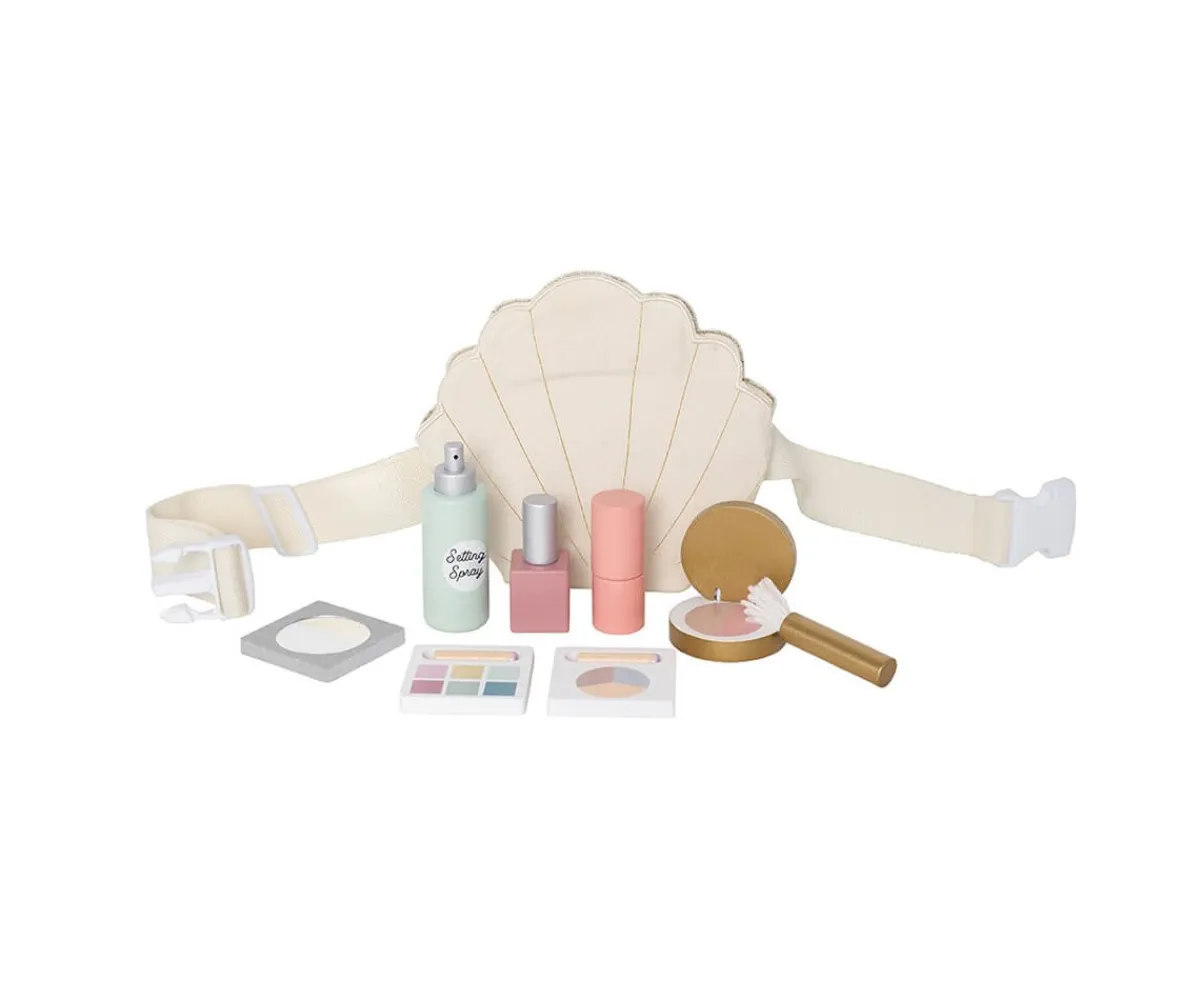 - Incluye: 1 neceser con forma de concha, 1 esmalte de uñas, 1 barra de labios,1 colorete,1 brocha para colorete, 1 spray fijador,1 espejo,2 paletas de sombras de ojos
