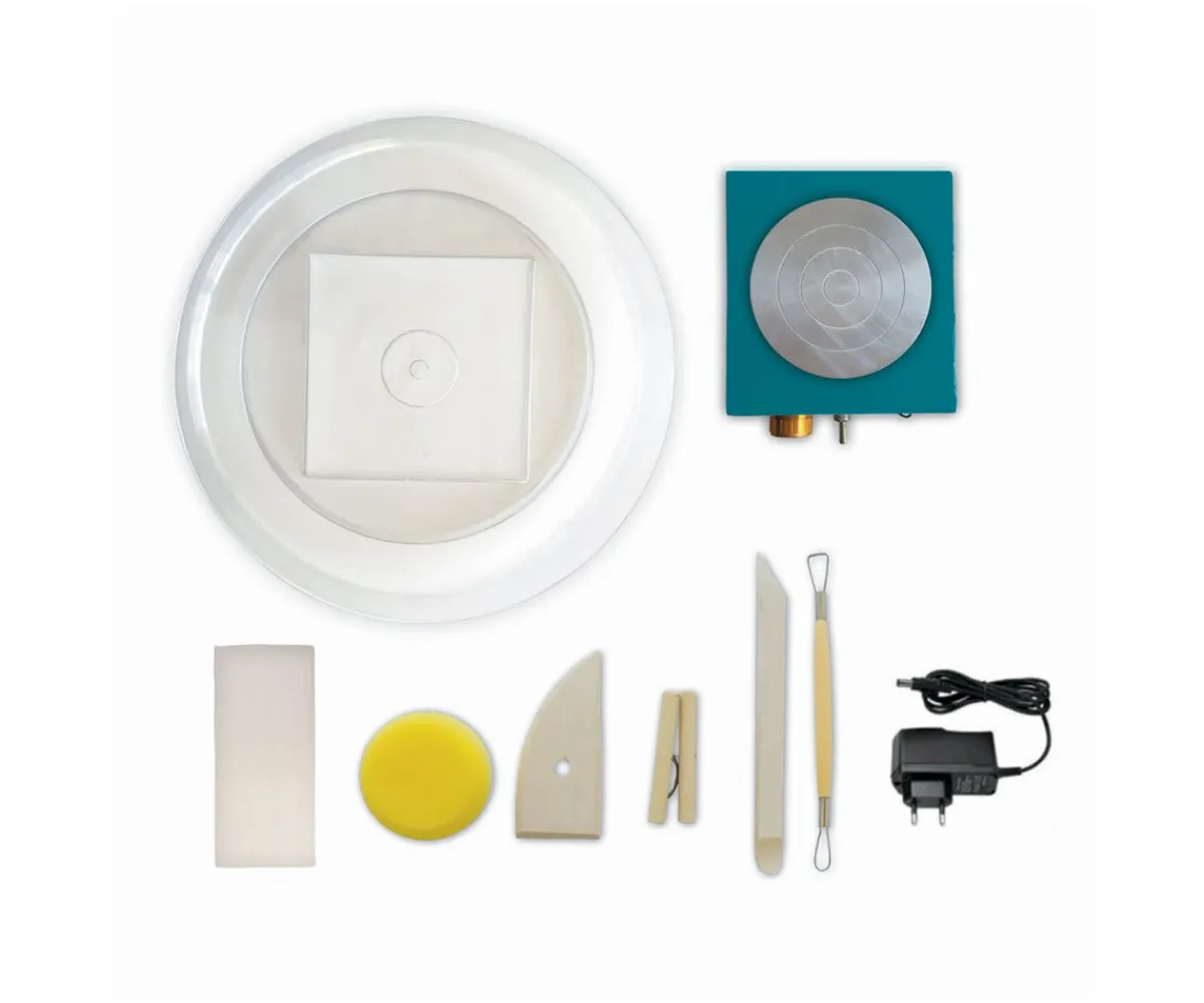 - Incluye: torno de alfarero con 2 bandejas de aluminio (10.5 x 6 cm), 1 interruptor de avance/retroceso, 1 botón para variar la velocidad (hasta 1000rpm), 1 cable de alimentación + toma de corriente, 6 herramientas de alfarería de madera para esculpir, modelar, cortar,cincelar,alisar…,1 bandeja protectora