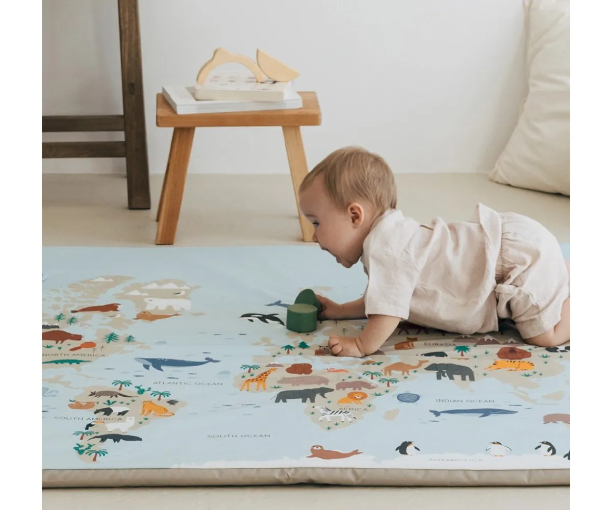Descubre Enrollagateo de Mimaar una colchoneta de gateo de una sola pieza, transportable y evolutiva.
