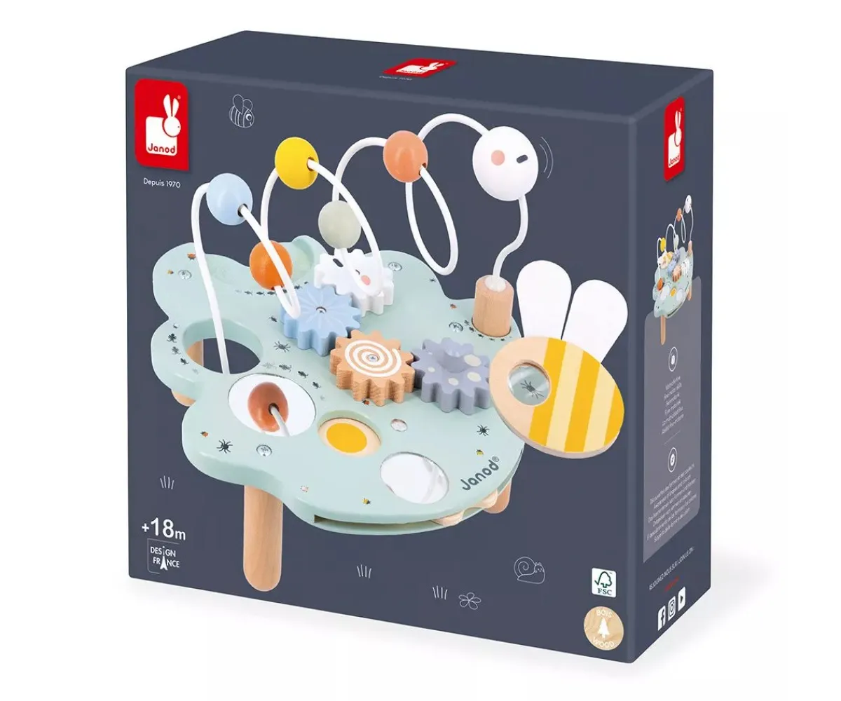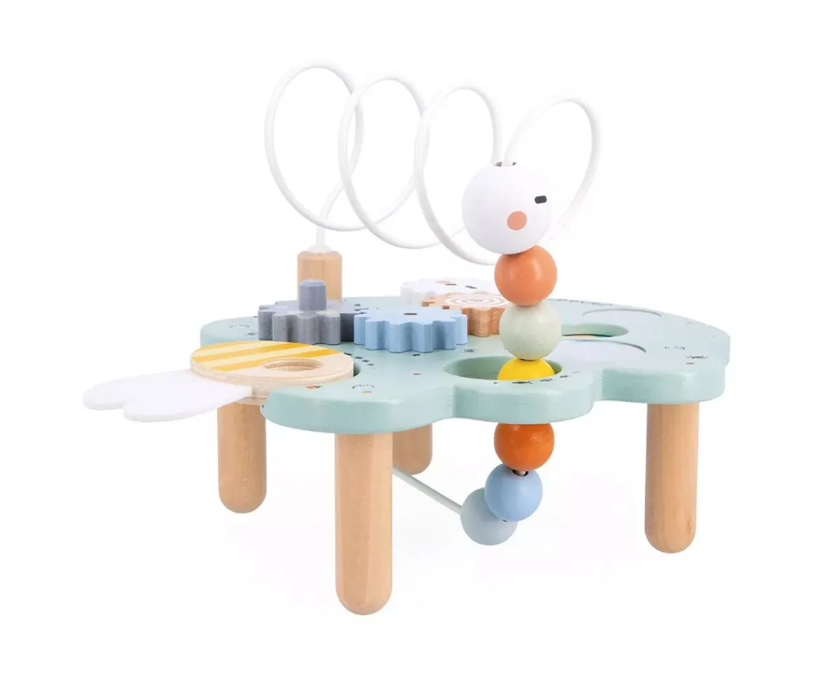 Desde engranajes giratorios hasta espejos para poder observarse, pasando por una rueda de colores y una lupa en forma de abeja, para estimular la motricidad y los sentidos de tu bebé con sus 5 divertidas actividades.