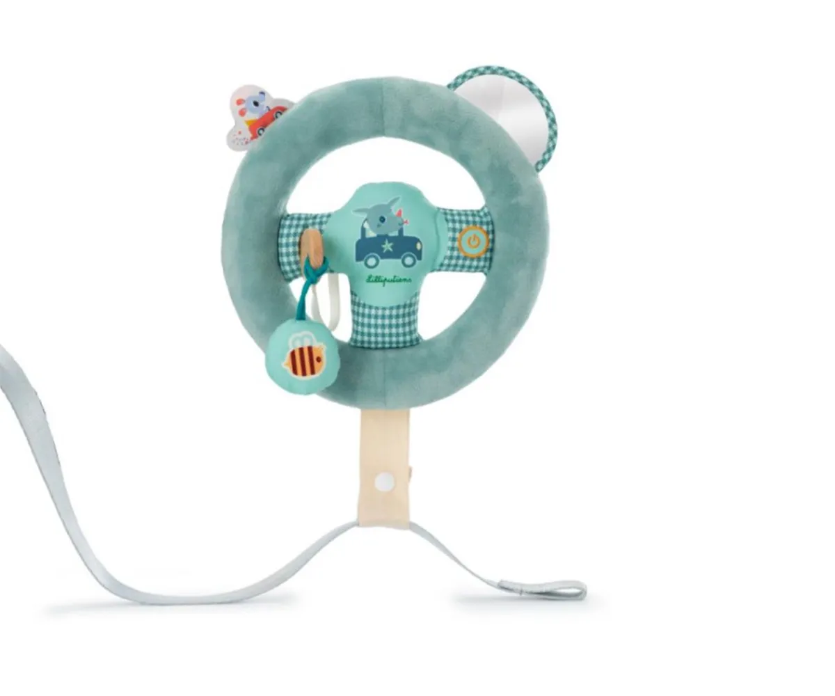 Este volante extraíble que se fija al cinturón del coche es perfecto para reproducir las acciones de los mayores, estimulando al mismo tiempo la imaginación del niño.