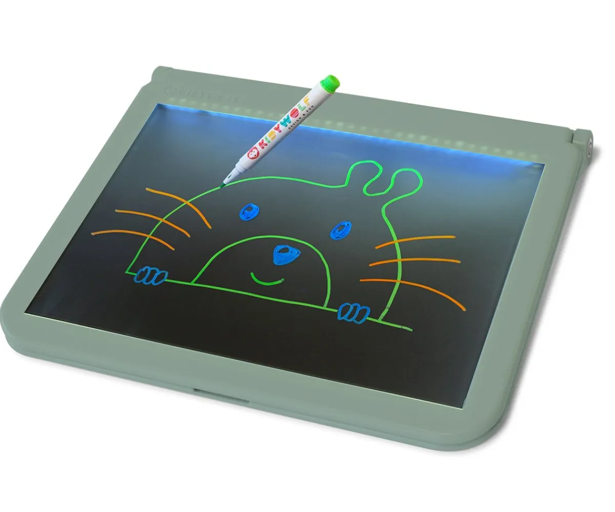 KidyDraw Pro es una tableta portátil y ligera que permite a tu hijo reproducir letras, números o dibujos existentes con precisión. Además, cuenta con una parte trasera que funciona como pizarra con efecto neón, resaltando los colores del dibujo incluso por la noche. ¡Una manera divertida de fomentar la creatividad de tu peque!