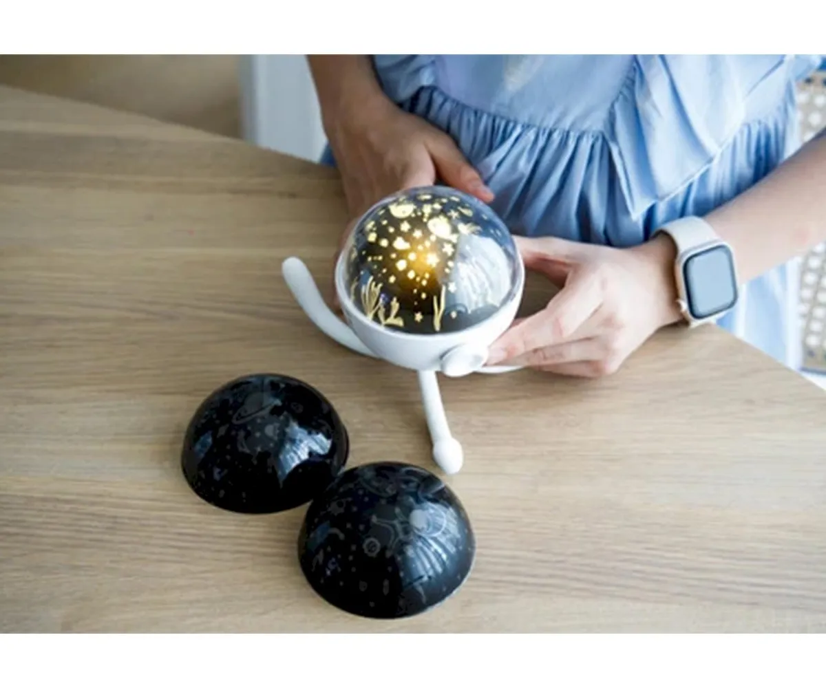 Preciosa lámpara proyector de luz GioStar con silueta de pulpo que aportará una sensación cálida y relajante tanto a peques como a mayores. Con planetas giratorios, estrellas centelleantes y un ambiente marino misterioso, brinda seguridad y tranquilidad en las horas nocturnas.