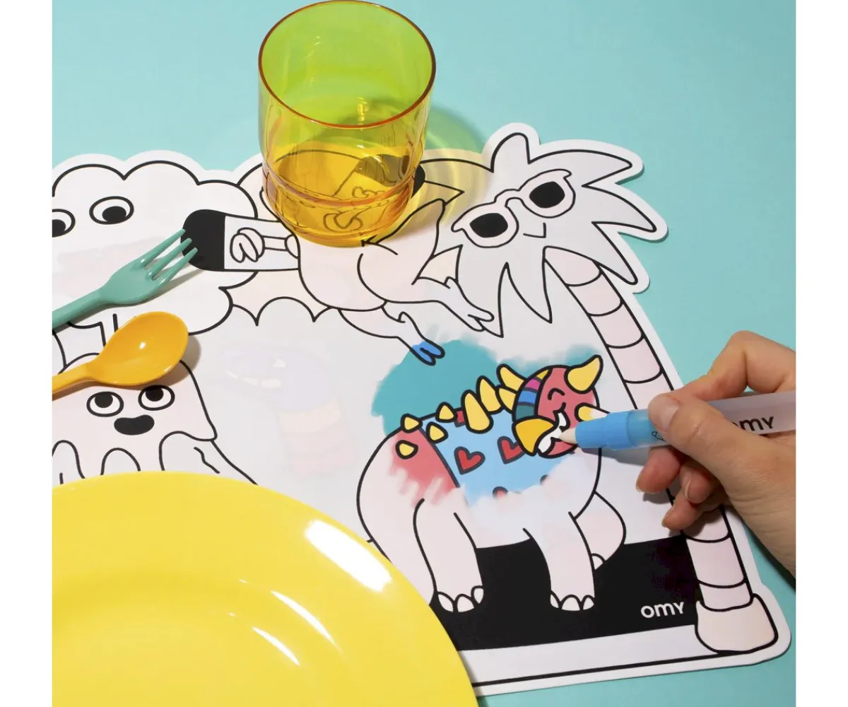 Los manteles individuales Magic Water de Omy ofrecen una experiencia entretenida y creativa para los más pequeños. Al pasar el bolígrafo mágico lleno de agua sobre el set, ¡los colores aparecen como por arte de magia!