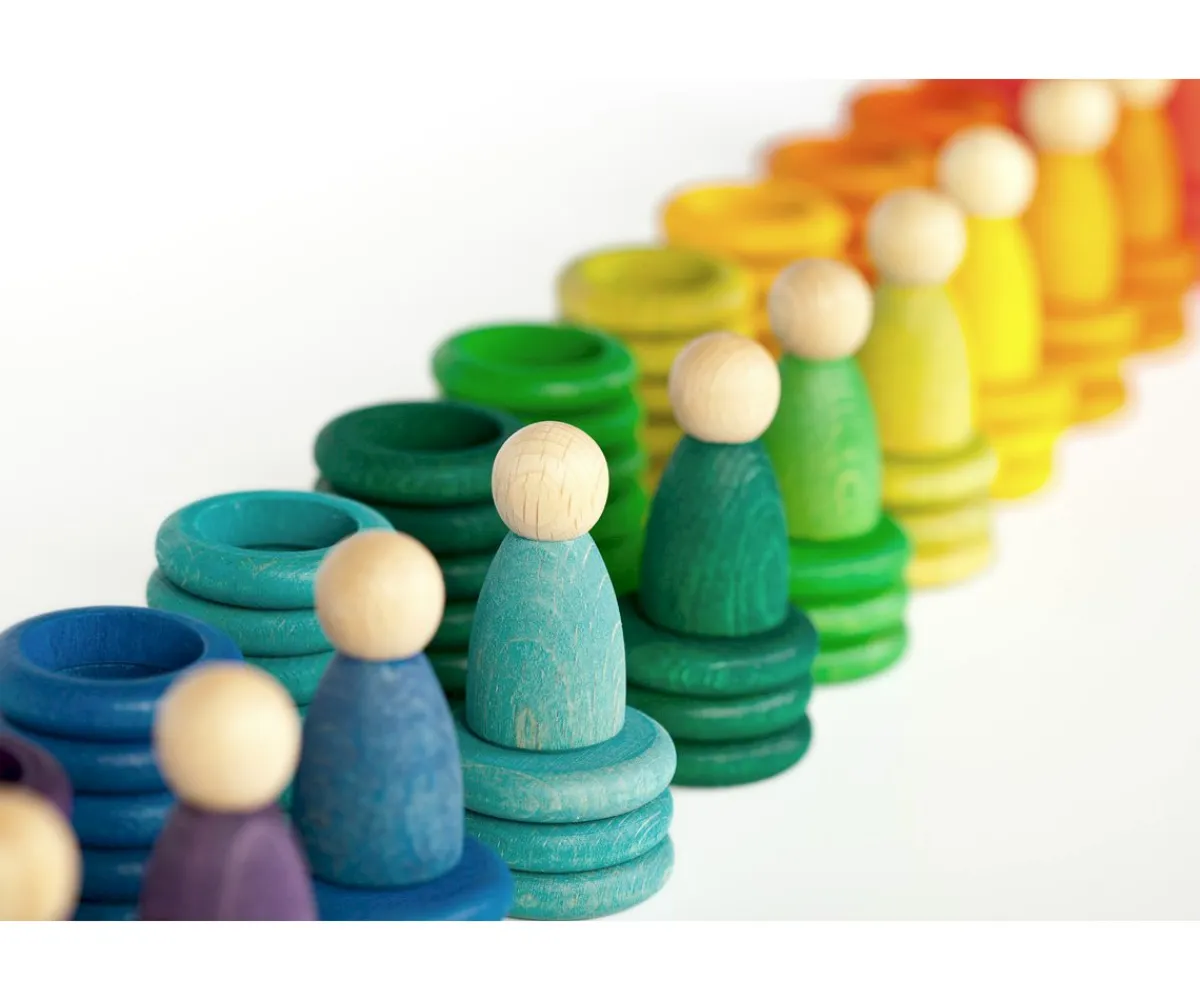 Estas acciones favorecen la coordinación óculo-manual y las destrezas motrices. Los Nins invitan también al juego simbólico y la creación de historias y Mini Mundos.