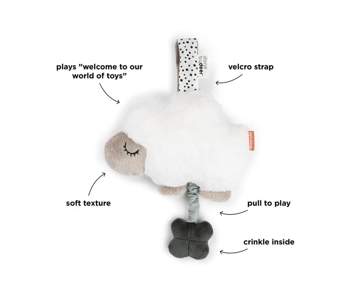 Peluche musical de una dulce oveja llamada Sheepy de la colección Tiny Farm de Done by Deer, ofrecerá calma a tu bebé y hará que se sienta seguro y tranquilo a la hora de dormir.