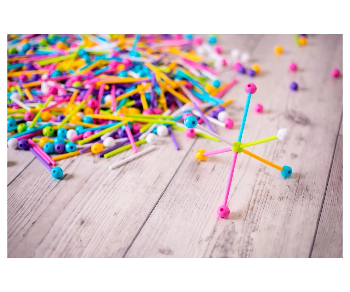 Stik son varillas flexibles que se unen entre si usando bolitas con agujeros para crear estructuras 3D.