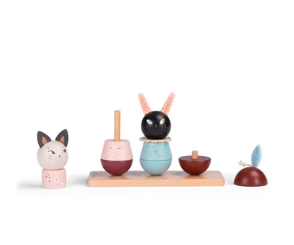 Divertido juguete apilable de madera en el que los peques deberán superponer las piezas sobre una base de madera.