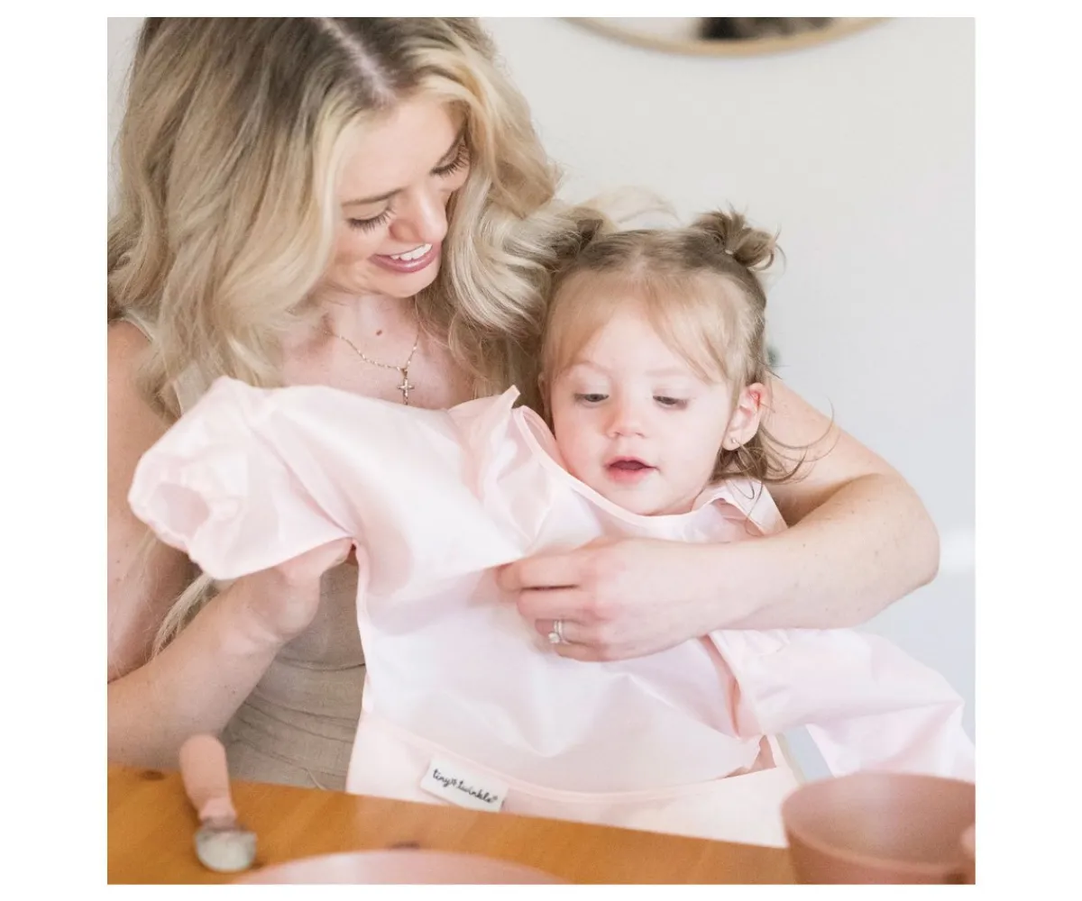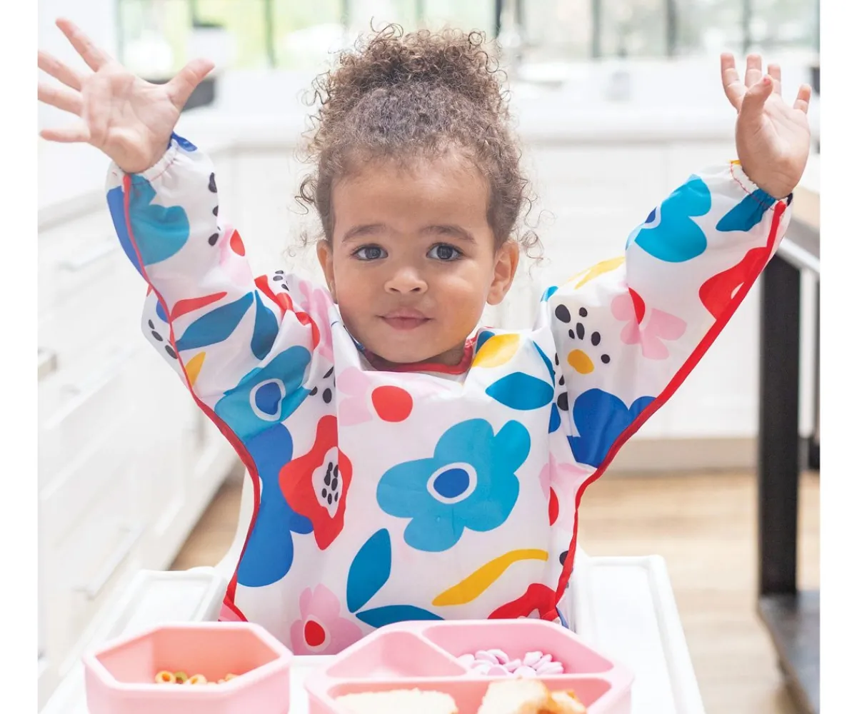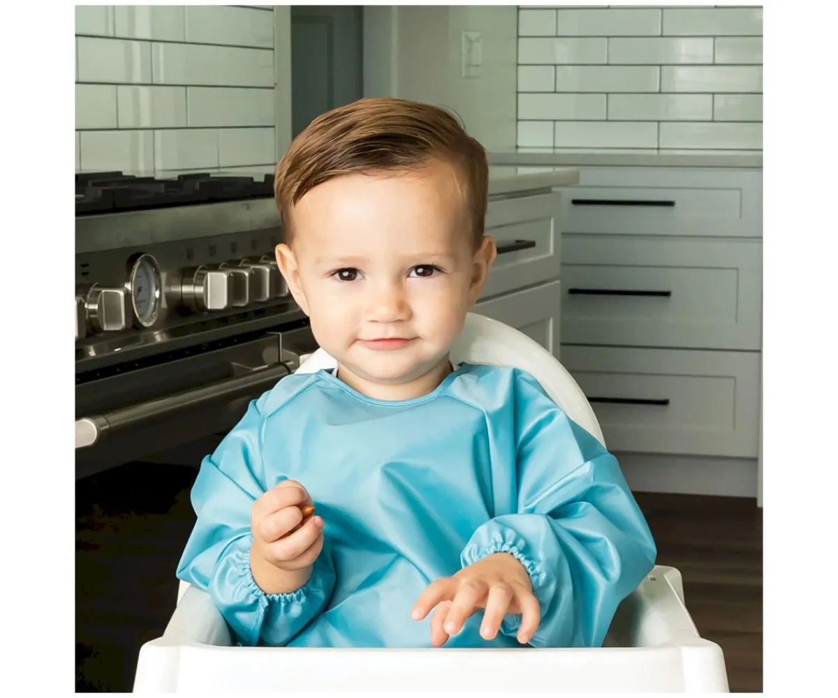Los originales baberos con mangas de Tiny Twinkle están fabricados con poliéster suave y hecho de plástico reciclado. Cuentan con mangas largas con puños elásticos para proteger la ropa de los peques y un bolsillo en la parte delantera que lo atrapa todo.