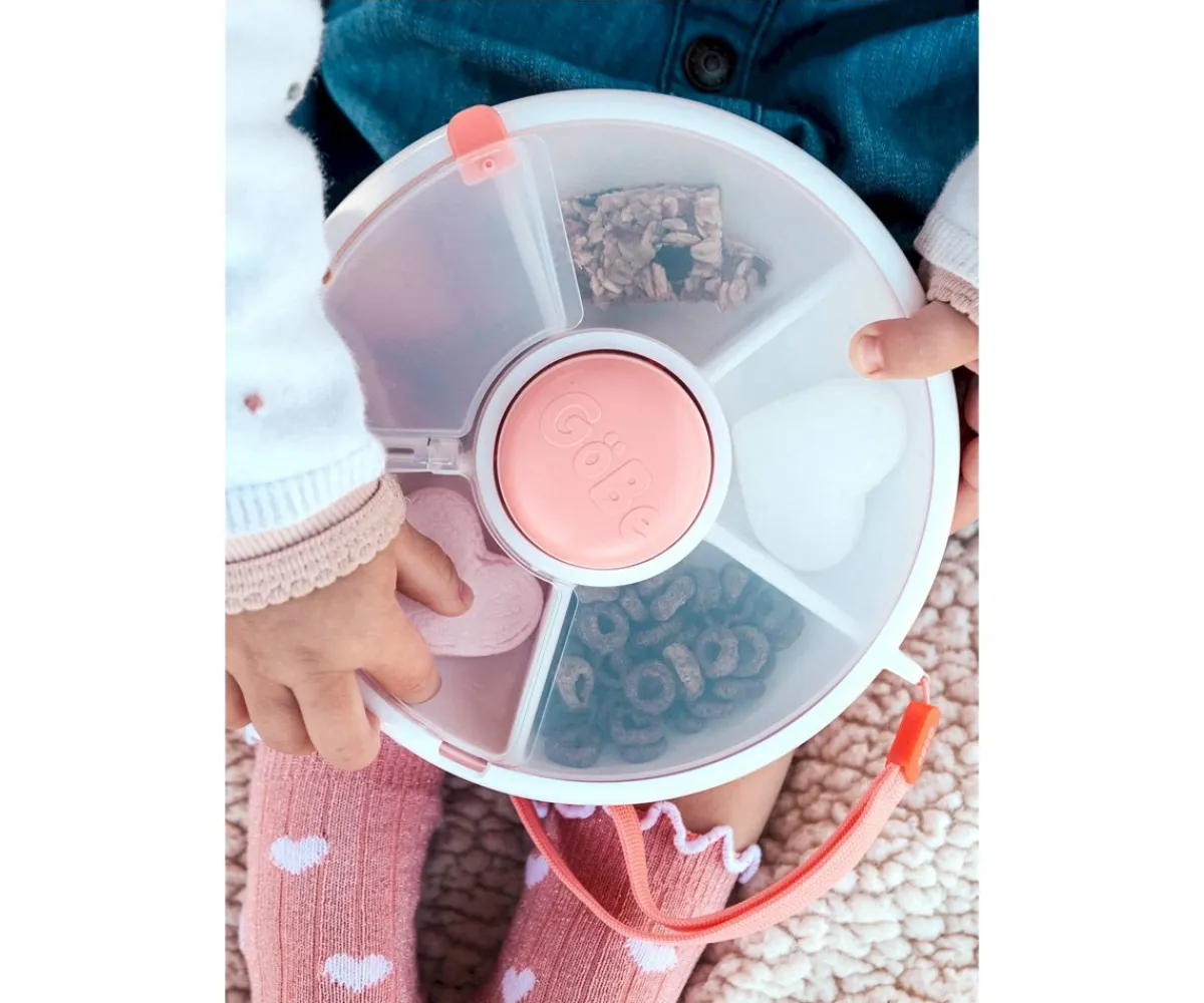 Snack Spinner de la marca GöBe es ideal para llevar una gran variedad de snacks, frutas y verduras, a cualquier lugar y sin riesgo de derrames. La correa de mano es perfecta para que los peques la transporten fácilmente y con la hoja de pegatinas podrás personalizarla con el nombre de tu peque.