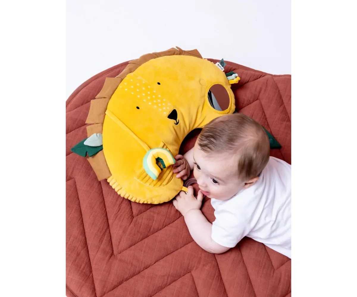 Un cojín muy alegre y lleno de actividades en el que tu peque lo pasará en grande jugando boca abajo al tiempo que fortalece el cuello y la espalda.