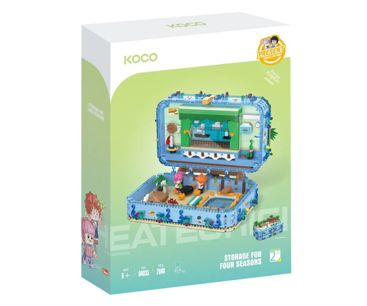¡El juego KOCO Building Blocks es un juego de 2000 piezas que recrea un escenario de verano con piscina y veleros!