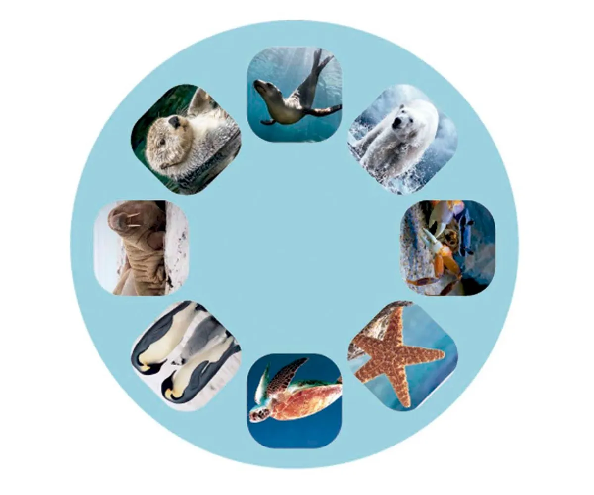 - Se compone de tres discos con imágenes de diferentes animales marinos.