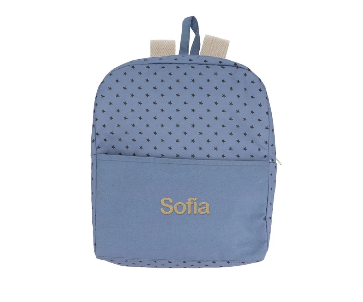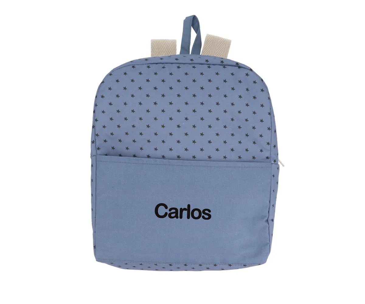 Mochila de tela ideal para llevar las mudas a la escuela infantil o primeros cursos del colegio. Se puede colgar fácilmente en una percha o gancho gracias al asa que lleva en la parte superior.