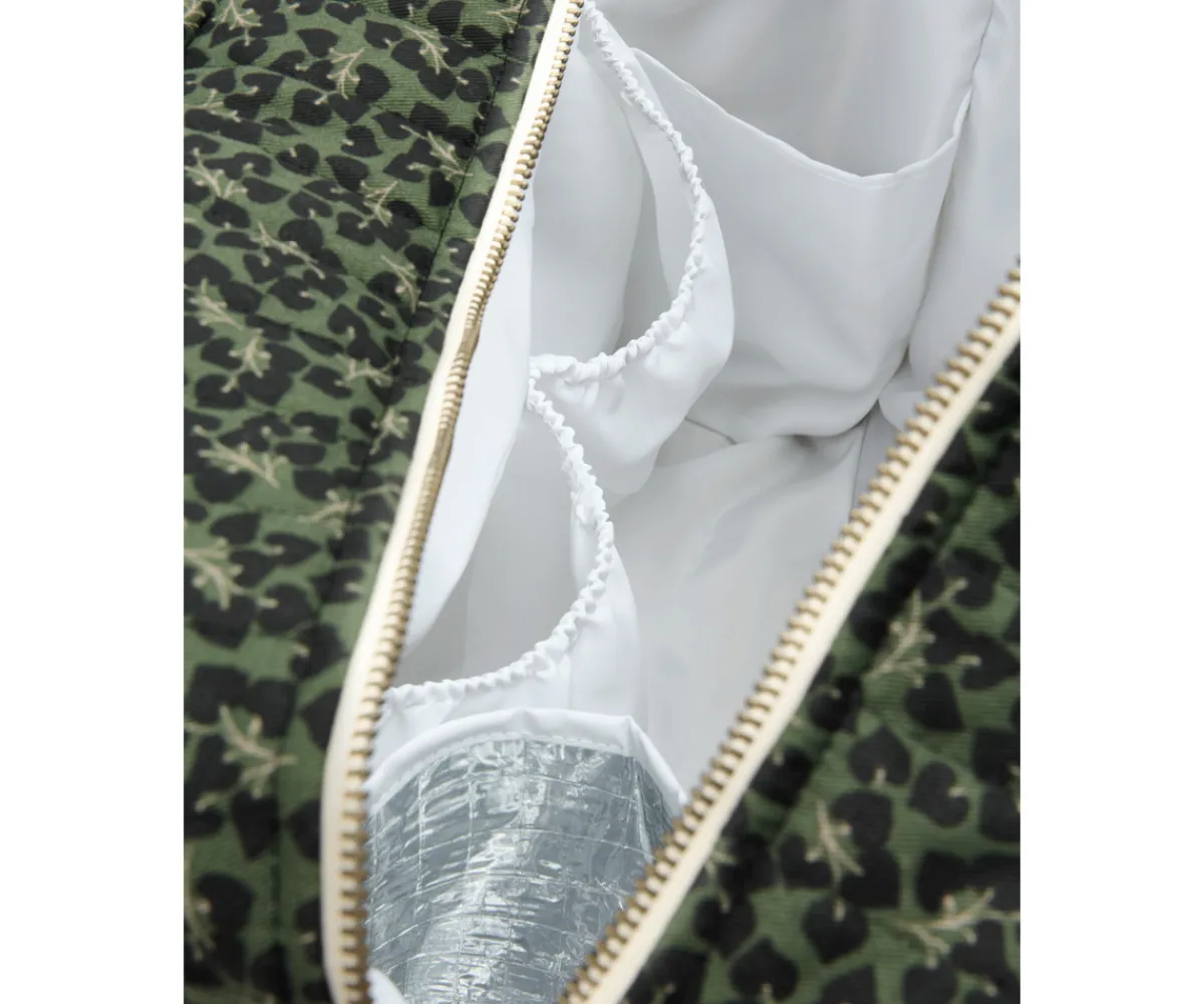 En su interior encontrarás un bolsillo isotermo, ideal para guardar biberones o alimentos y mantenerlos a la temperatura adecuada durante los paseos. Además, su diseño práctico y elegante lo convierte en el complemento perfecto para las salidas con tu bebé.