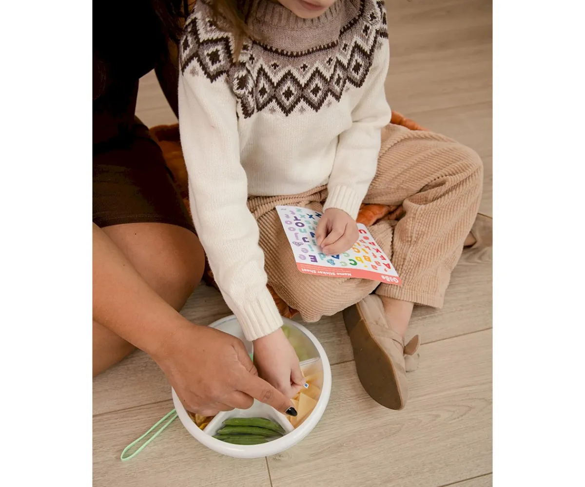 Snack Spinner de la marca GöBe es ideal para llevar una gran variedad de snacks, frutas y verduras, a cualquier lugar y sin riesgo de derrames. La correa de mano es perfecta para que los peques la transporten fácilmente y con la hoja de pegatinas podrás personalizarla con el nombre de tu peque.