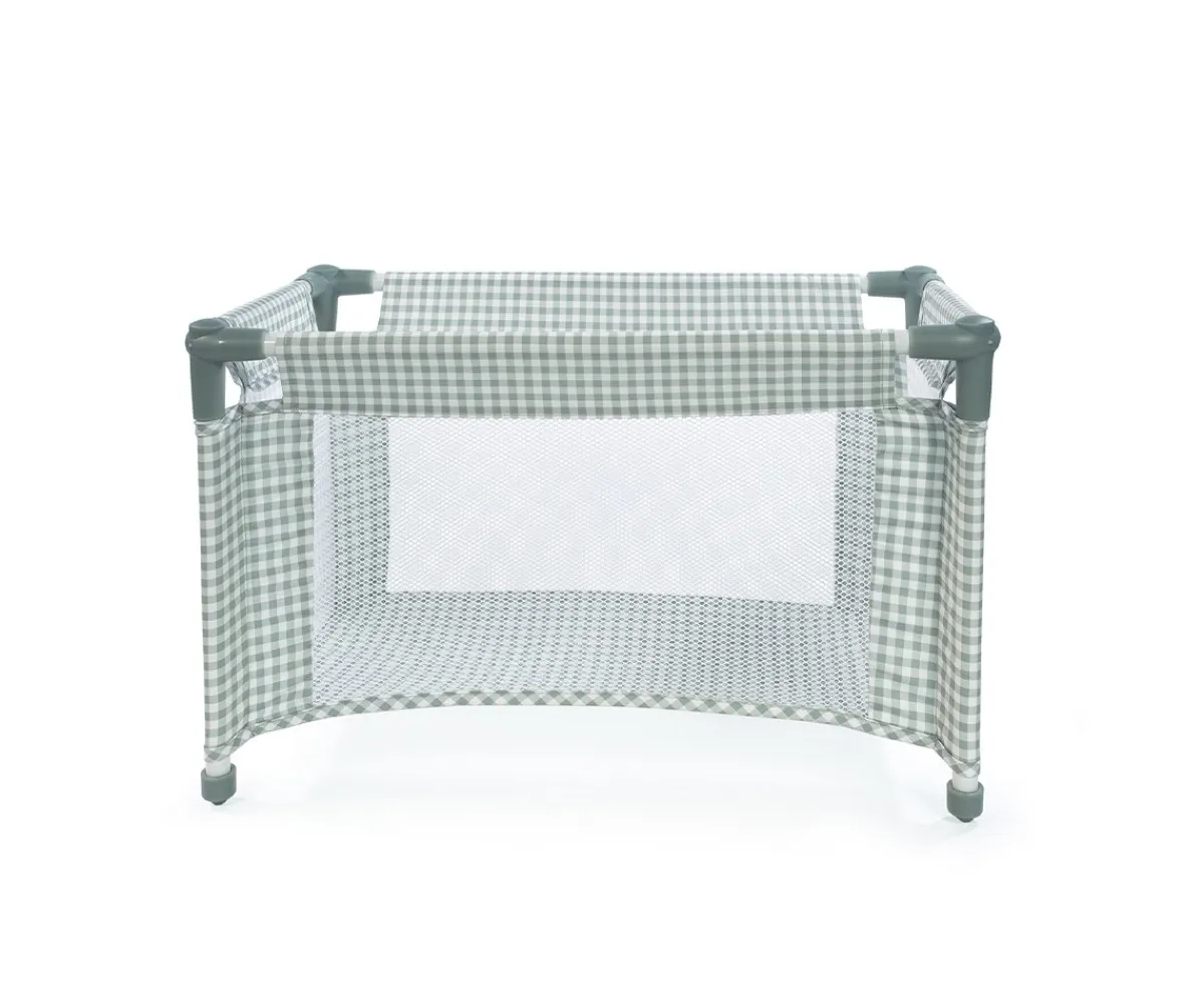 Ya puedes llevarte de vacaciones a tus muñecas con la cuna de viaje Tom Vichy verde de Pasito a pasito, plegable y muy práctica